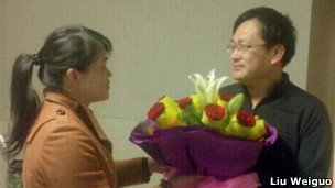 支持者向刚获释的王全璋律师献花