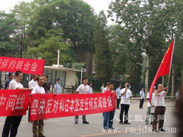 人民监督网讯 (记者 朱瑞峰)2008年6月18日下午,中国15名公民在日本使馆前和平示威,抗议日本舰艇撞沉中国台湾渔船。整个过程持续了半个小时。