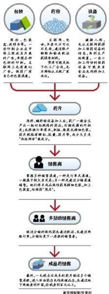 从原料、制作、运输、网络销售,甚至是假冒商标、包材等,已形成一个完整的地下产业链。