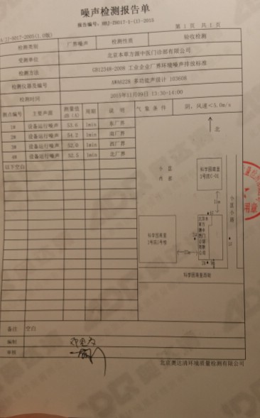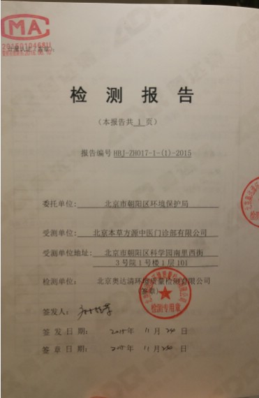 北京本草方源中医门诊部有限公司环评检测合格