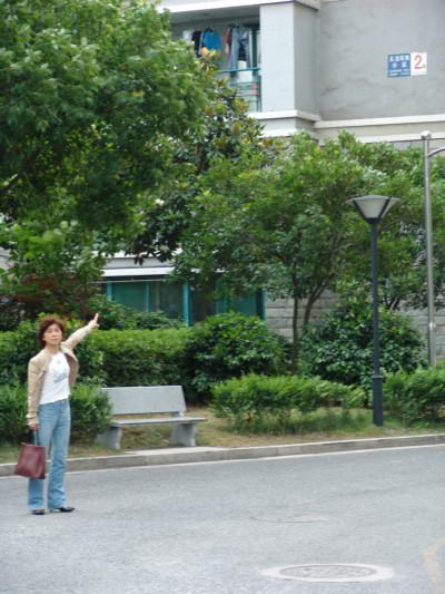 本图:绍兴县公安局原干部范菊花向记者指认徐焕明的豪宅位置