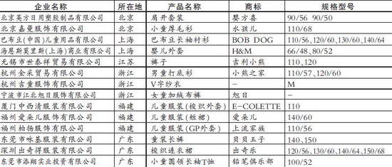 不合格服装产品名单