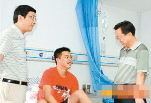 被误伤教师(左)身体康复