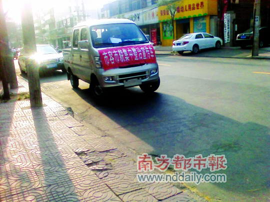 网友“疯子.督察”在河南本地大河网论坛发布的照片显示,一辆银灰色的小货车停在路边,车前挂着红布白字的标语:“市容市貌集中整治宣传车”;车身右侧则依稀可见蓝色的“魏都城管”字样,该车前后都没有挂车牌。
