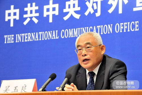 中央外宣办于2011年6月22日上午10时举行新闻发布会,请中央纪委副书记、新闻发言人吴玉良介绍中国共产党反腐倡廉建设等方面情况,并回答记者提问。图为吴玉良回答记者问题。