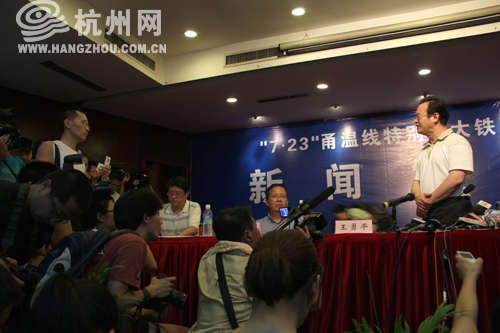 铁道部政治宣传部部长、新闻发言人王勇平向当时在事故列车上的记者致歉