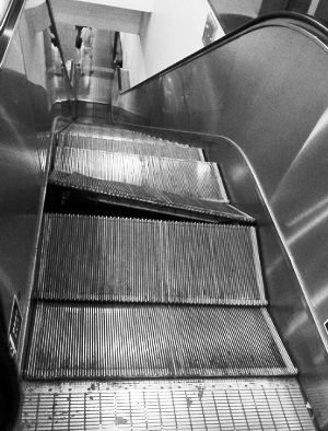 昨晚10时许,10号线双井站A口,上行扶梯已停运,下行扶梯运行正常。电梯旁,竖立着“设备故障、暂停使用”的提示牌,扶梯顶端入口处的盖板被掀起,盖板附近的1块梯级掀起并倾斜。