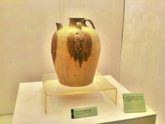 展品绝大部分都是从一个安徽淮北的文物爱好者手中征集而来,展品经过了权威专家的鉴定,其中多件被定为二级以上文物。在展厅,一个长沙窑的大壶引起了记者的注意。讲解员说,这个壶因为体型大,少见,目前在馆里被称为“壶王”。