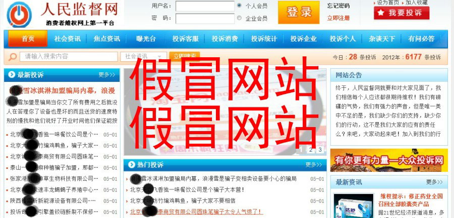 近期人民监督网传媒集团有限公司旗下《人民监督网》www.rmjdw5.com发现两个不法网站以《人民监督网》名义,假冒我集团公司《人民监督网》网站,并吹嘘以“消费者维权网上第一平台”、“全球中文最大的投诉监督平台!”等名义从事投诉维权欺诈活动。
