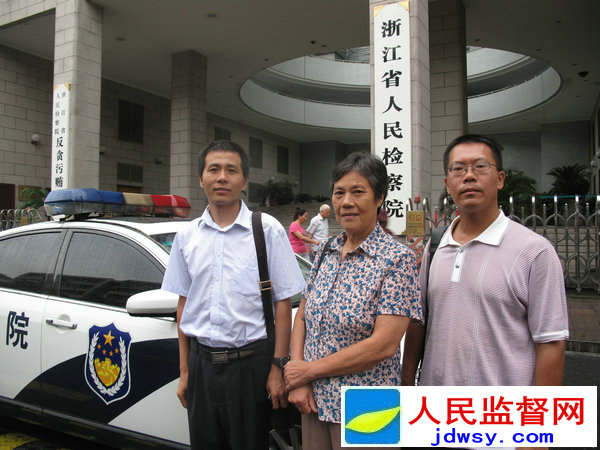 图:法学博士滕彪(右一)、访民王苗珍(中)、调查记者朱瑞峰(右三)到浙江省检察院递交控告材料