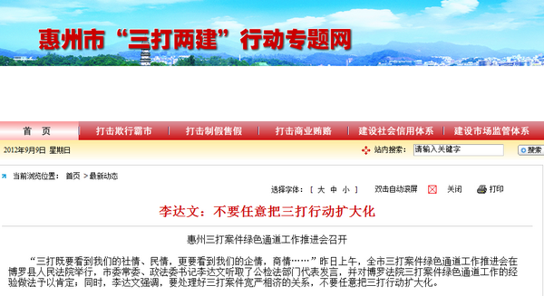 图:惠州市政法委书记李达文授意媒体公开叫板汪洋的“三打”