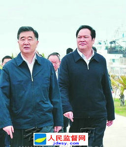 图:中共中央政治局委员、广东省委书记汪洋与朱明国副书记调研“三打”