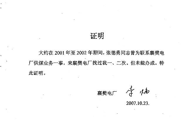 4、襄樊电厂副总经理李焰的证言证实了张德勇和杨明春、周家森是以襄樊分公司的名义到襄樊两个电厂联系煤炭销售业务的事实。一审法院法官说张德勇没有依袁朝伟的名义去襄樊电厂联系业务,所以李焰的证词是无效的。因襄樊分公司与袁朝伟是合作关系,不是代理关系,襄樊分公司不可能依袁朝伟的名义出现,这是常人都懂的道理。