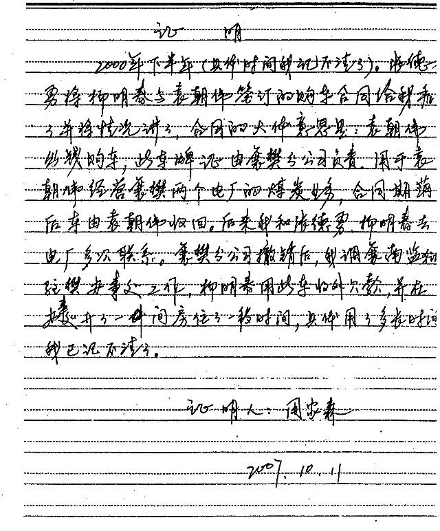 2、周家森的询问笔录(卷228页)——证明了杨明春将协议拿给公司副经理周家森过目,同时证明了襄樊分公司与袁朝伟有这样的合作项目,以及该车的来源和权属。证实了为履行合同到电厂多次去联系业务的事实。同时证明了襄樊分公司撤消杨明春调回监狱后,又回到襄樊使用该车催收外欠款的事实。