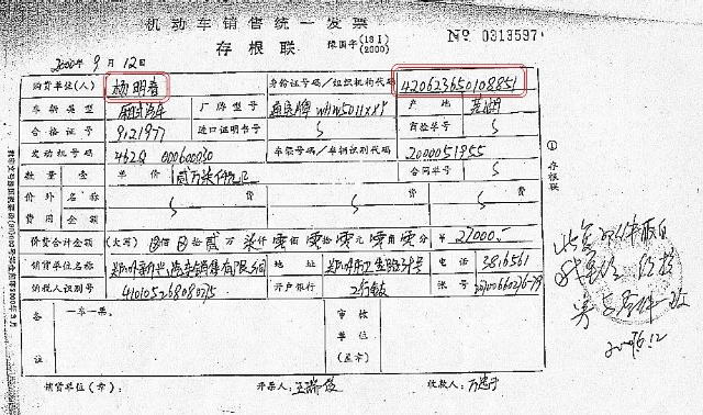 杨明春的购车发票