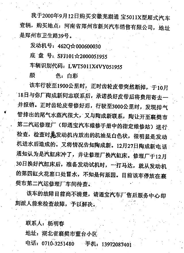 5、杨明春的修车说明——杨明春在卷中(52页)承认了该修车说明,其直接证明了襄樊分公司撤消后杨明春仍留在襄樊办事处使用该车催收个人外欠款和联系业务的事实。